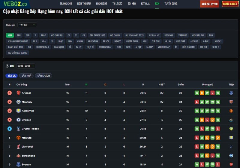 Mình không ngại nói thẳng: với anh em bet thủ, bảng xếp hạng bóng đá Ngoại hạng Anh là nền tảng để soi kèo. Và VeboTV làm rất tốt vai trò đó.