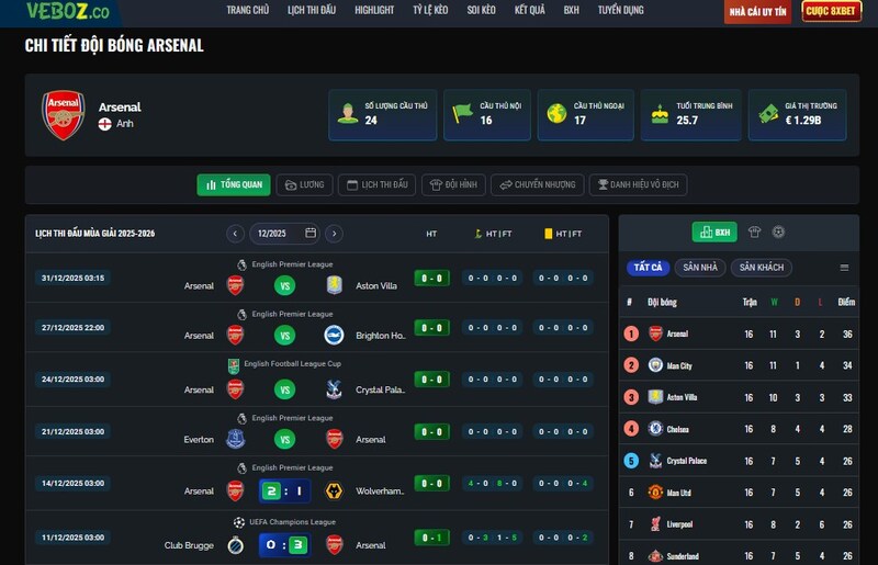 Không màu mè, không quảng cáo dày đặc, VeboTV làm đúng một việc nhưng làm rất tốt: biến bảng xếp hạng bóng đá Ngoại hạng Anh thành một công cụ dễ đọc, dễ hiểu và dễ áp dụng, đặc biệt hữu ích cho anh em bet thủ hoặc fan EPL chính hiệu.